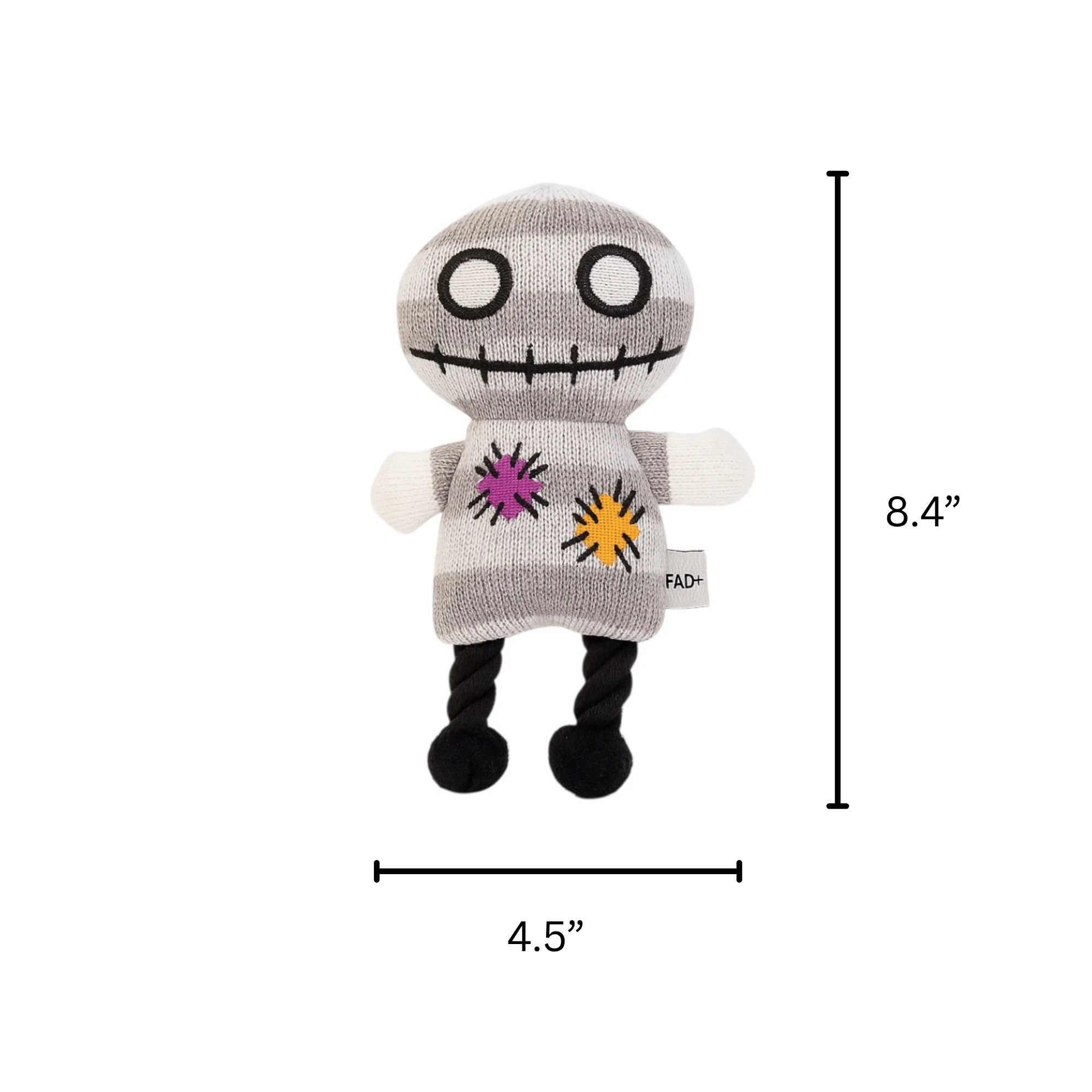 Say hello to the Patchy Snugbot dog toy — the quirky, lovable little character your pup will adore! With his spooky-cute look, soft knitted texture, and playful rope legs, Patchy Snugbot brings a mix of cozy cuddles and silly fun to every playtime.